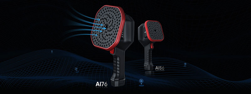 The HIKMIRCO AI56L acoustic imaging camera Specialized algorithms and 64-MEMS-mic array target industrial gas leaks with high accuracy. Streamlined for plant safety and environmental compliance.