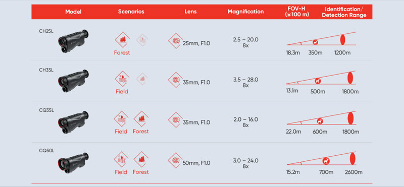 thermal sensitivity of less than 20mK, CQ50L with a 1000m