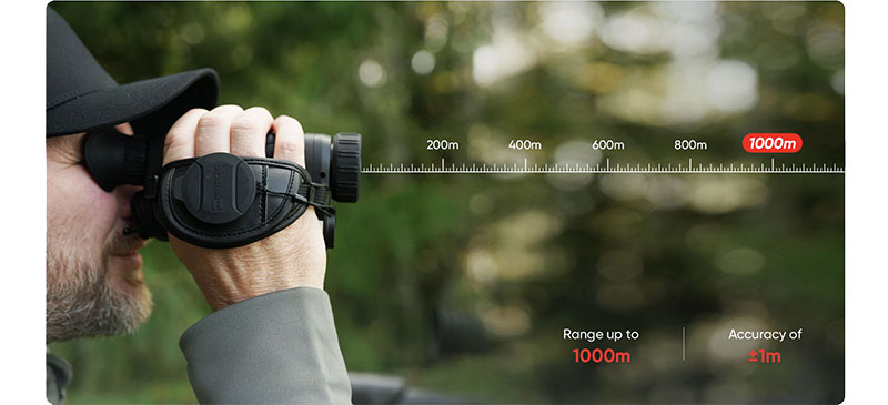 Distance from the game is essential to ensure a safe shot. The integrated laser rangefinder in HIKMICRO CONDOR thermal monocular allows the user to measure a distance up to 1,000m with an accuracy of ±1 meter in various scenarios, enjoying the most precise measurement of the situation.