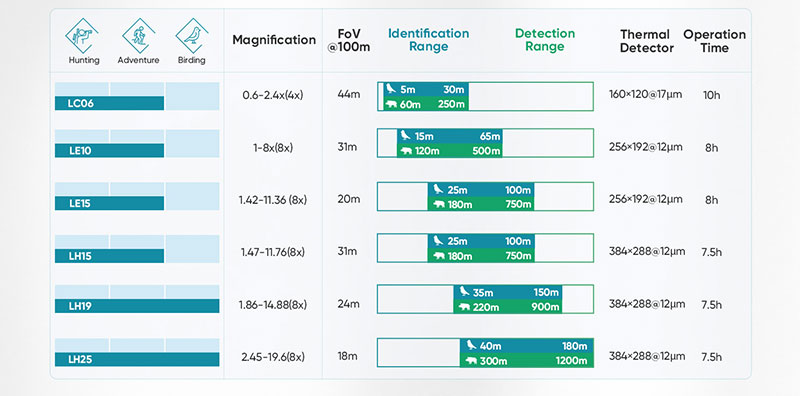 LYNX PRO series carries the new VOx 256×192/ 384×288 12 μm sensor (less than 35 mK), and large aperture lens, which gives a clear picture of the target even in complete darkness.